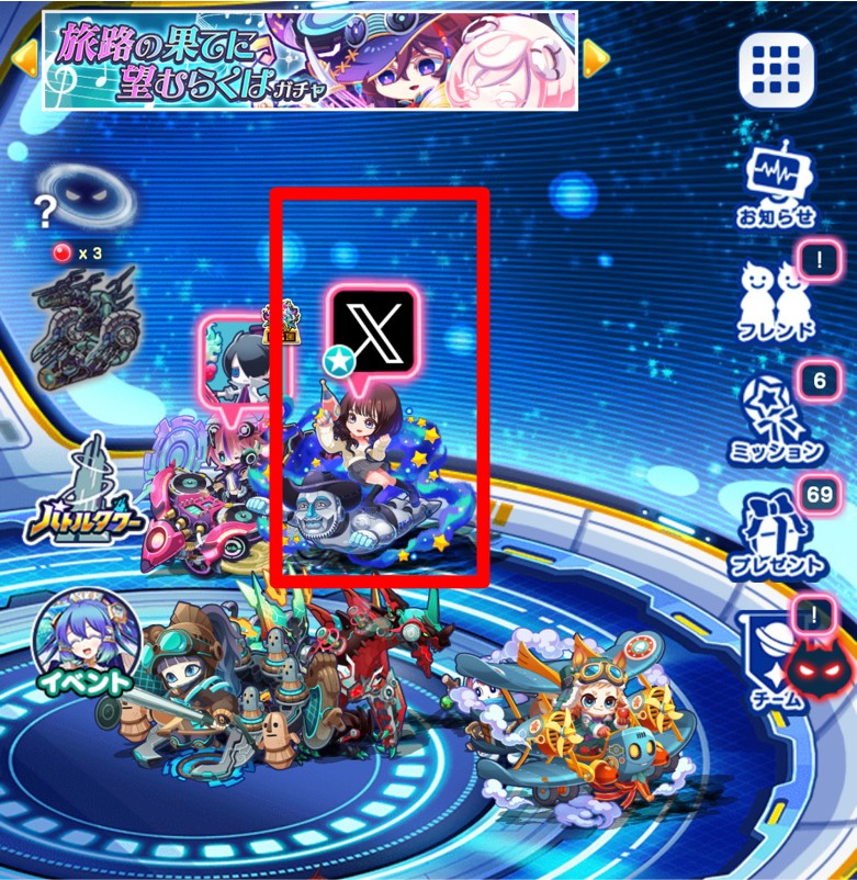 ①ホーム画面上でハリウッドザコシショウさん、もしくは森脇さんのエイリアンを見つける