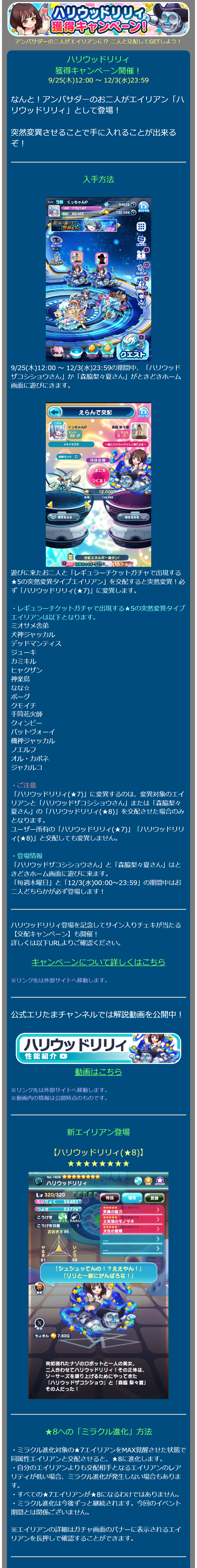 ハリウッドリリィ 獲得キャンペーン開催! 9/25(木)12:00 ~ 12/3(水)23:59
