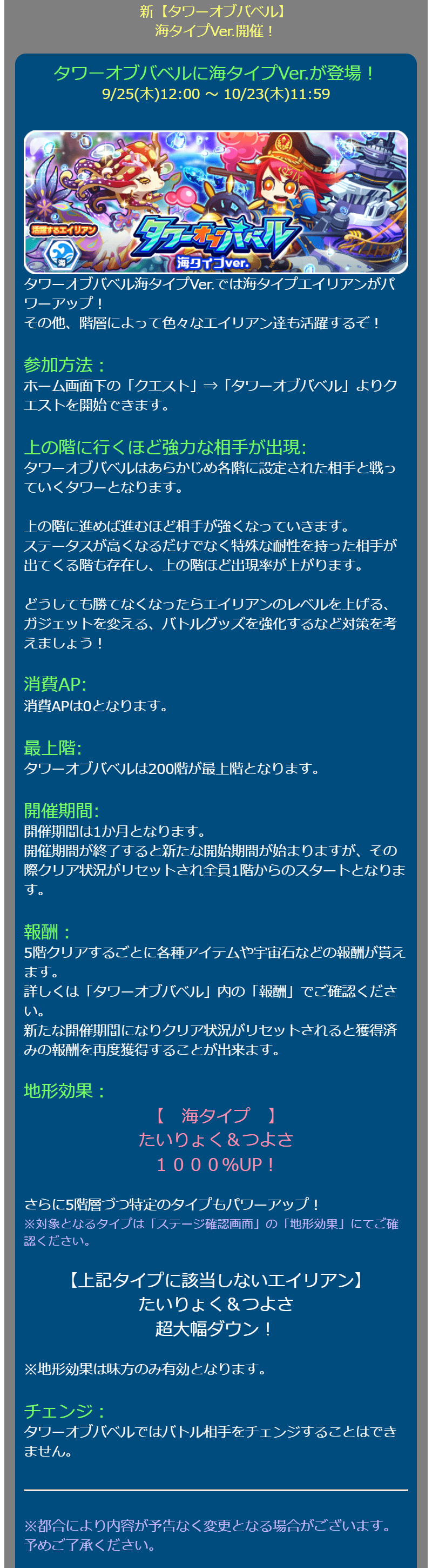 タワーオブバベルに海タイプVer.が登場! 9/25(木)12:00 ~ 10/23(木)11:59