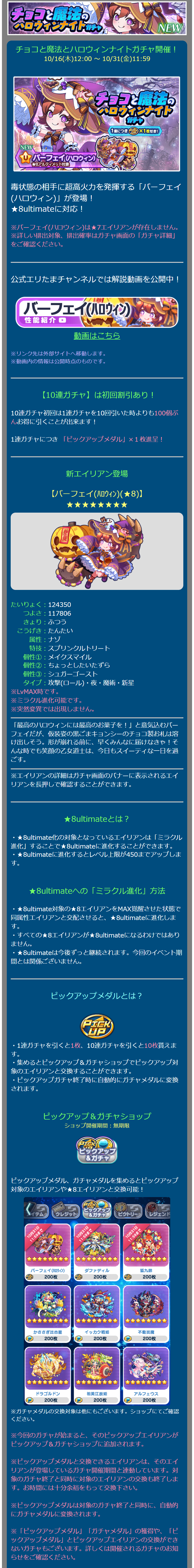 チョコと魔法のハロウィンナイトガチャ開催! 10/16(木)12:00 ~ 10/31(金)11:59