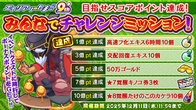 10億ポイント達成につき、おかわりミッションが追加されました!