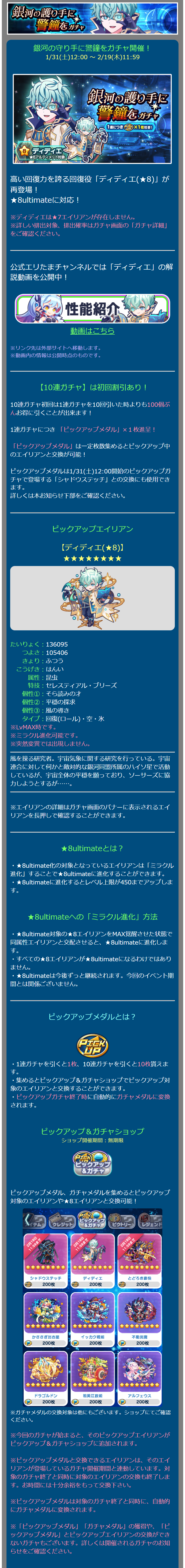 銀河の守り手に警鐘をガチャ開催! 1/31(土)12:00 ~ 2/19(木)11:59