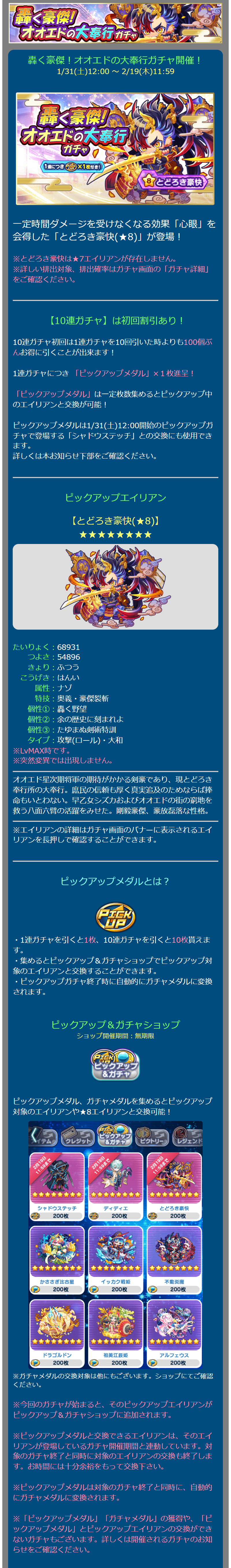 轟く豪傑!オオエドの大奉行ガチャ開催! 1/31(土)12:00 ~ 2/19(木)11:59