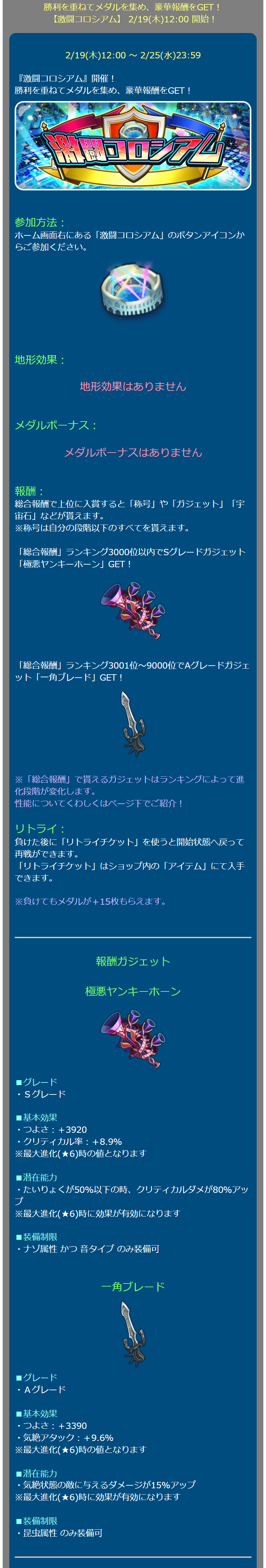 激闘コロシアム】開催! 2/5(木)12:00 ~ 2/11(水)23:59